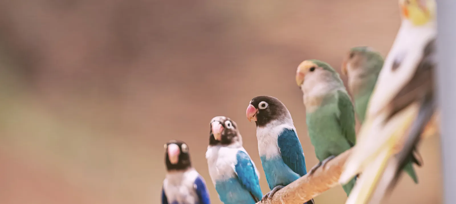 かわいいインコたちの表情や、仲良く寄り添う様子をフォトギャラリーでご紹介します。