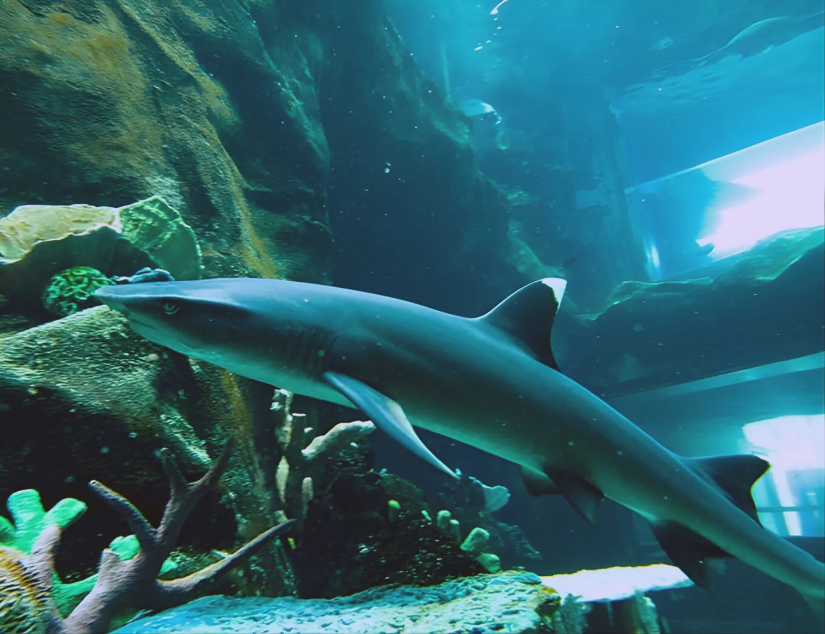 その中では、ハワイ近海に生息するネムリブカ、ツマグロ、メジロザメたちが優雅に泳いでいます。