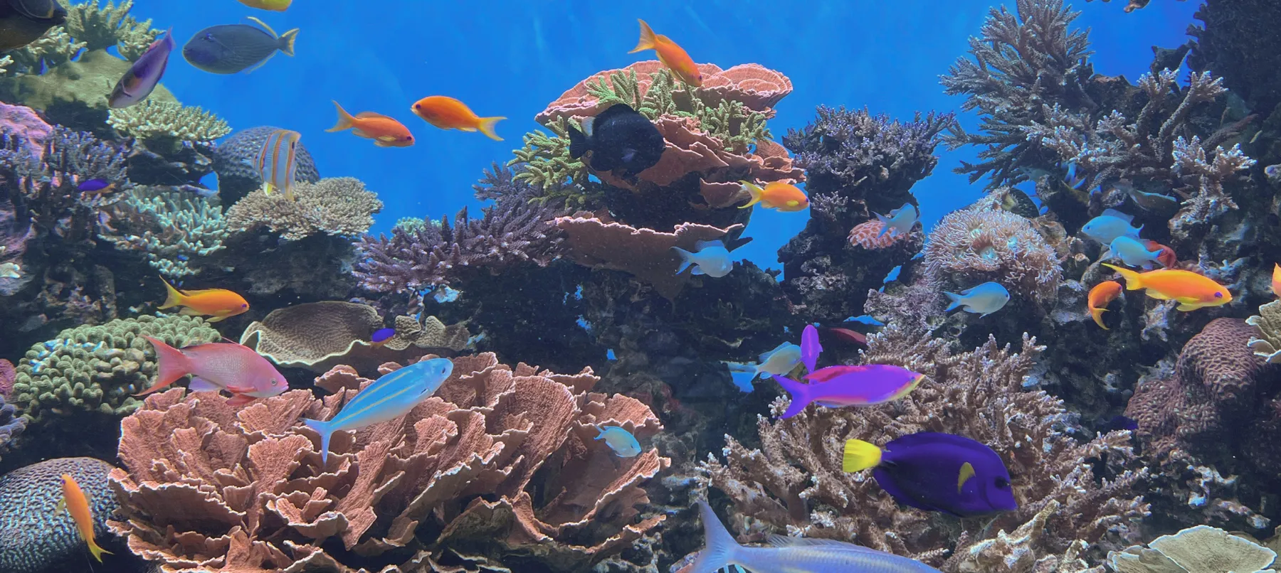 カラフルな魚たちが光を受けてきらめく姿は、まるで海の宝石のよう。