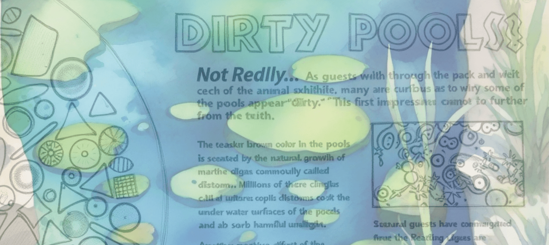園内に設置されている「プールの水が濁って見える理由」の説明パネルです。
